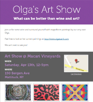 Thank you. The mailman is on his way. I will get back to you as soon as I can! - Olga